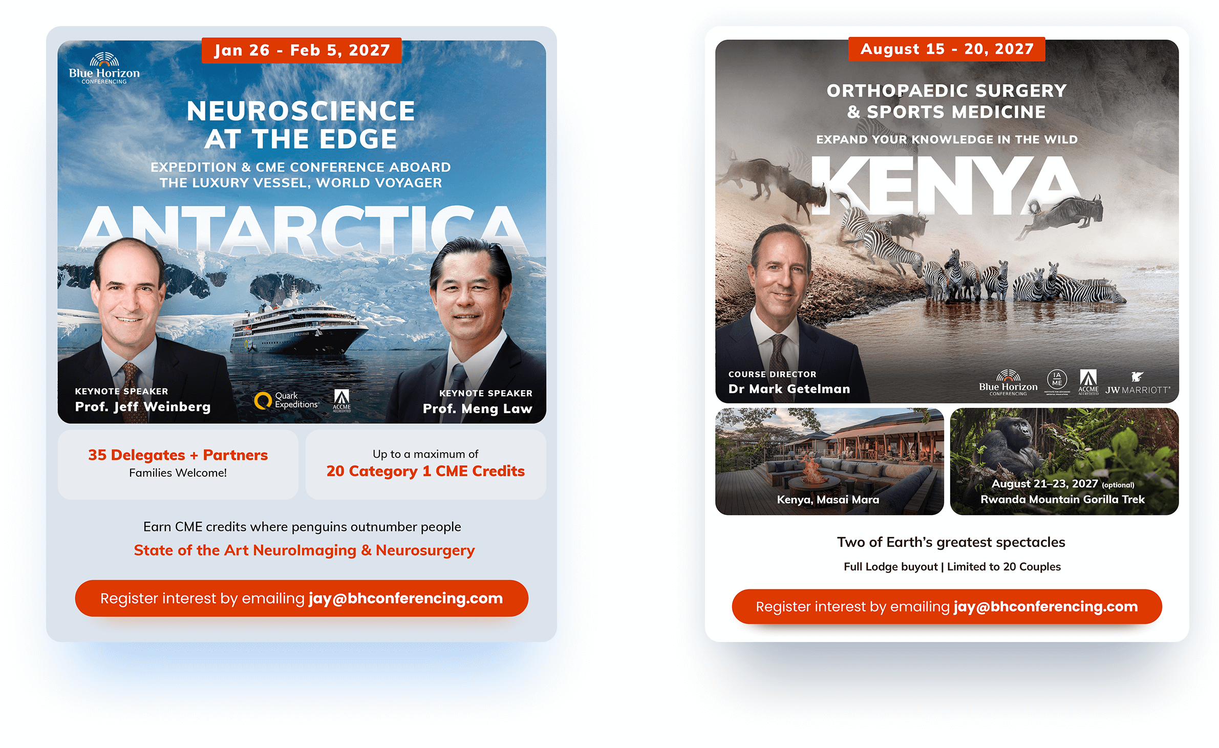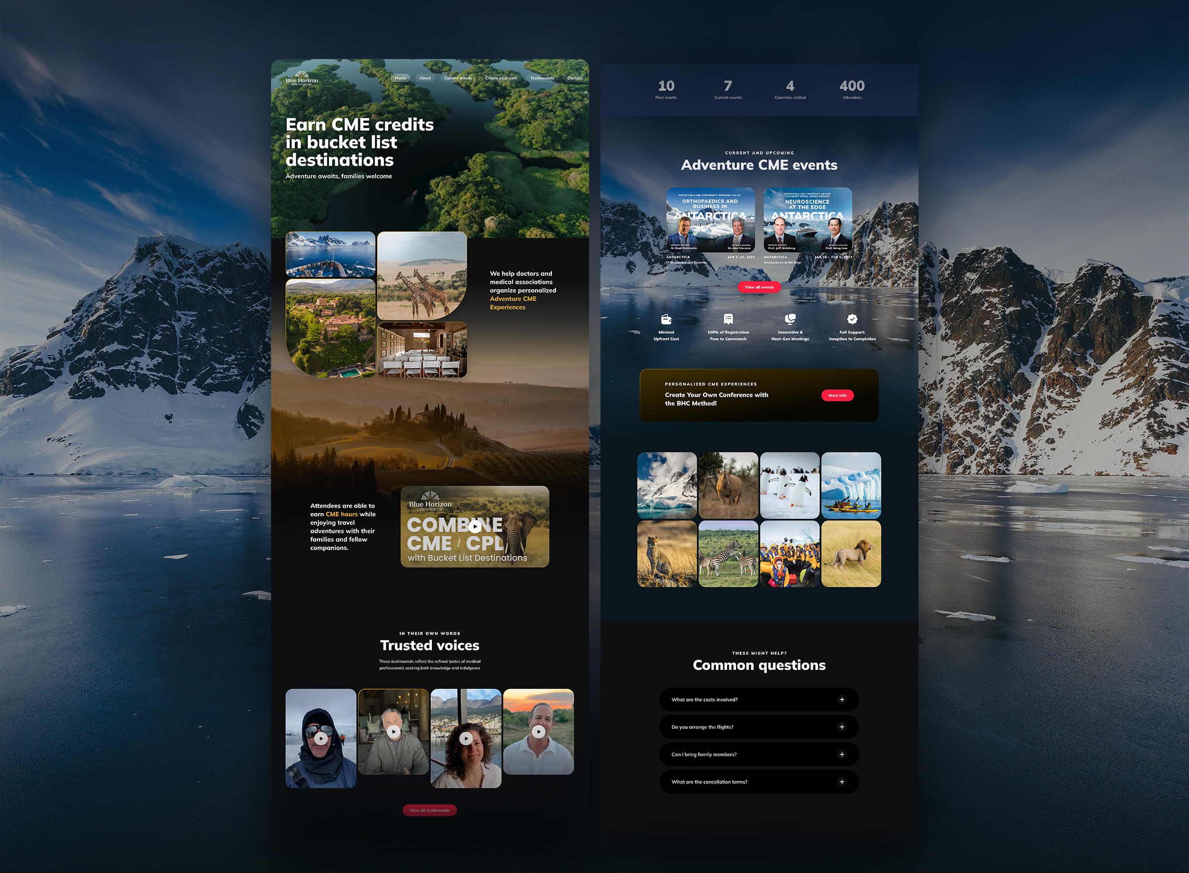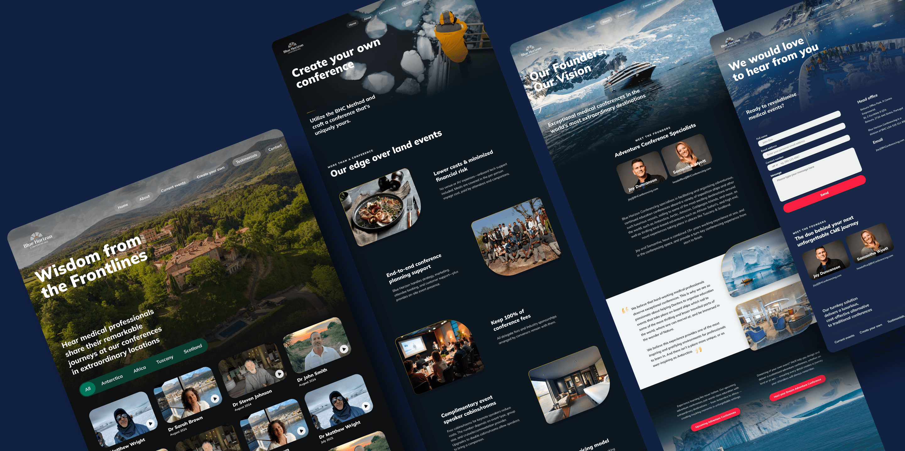 Blue Horizon Conferencing’s website was built around bold, immersive imagery that reflects the beauty of their global event locations. We continue to support the brand across all creative channels — including social media, event pages, videos, and brochures — for a consistent, polished presence.