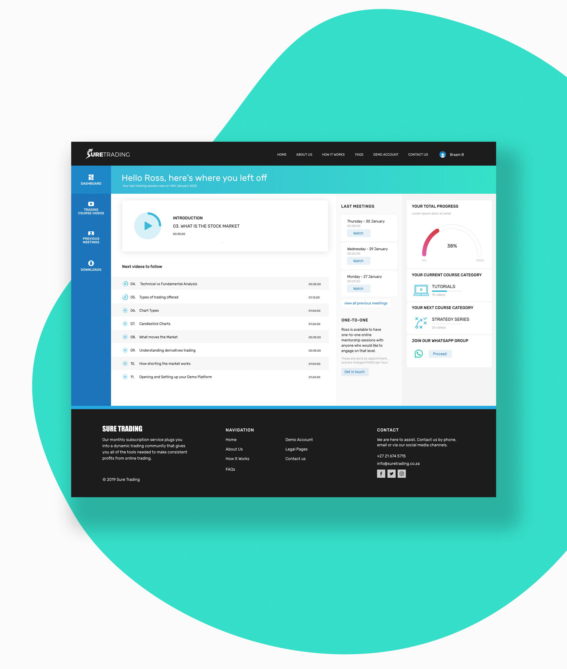 Sure Trading is a company that assists individuals in learning how to trade on the stock market. This new website will serve as a member portal for their clients and provide various types of content and information.